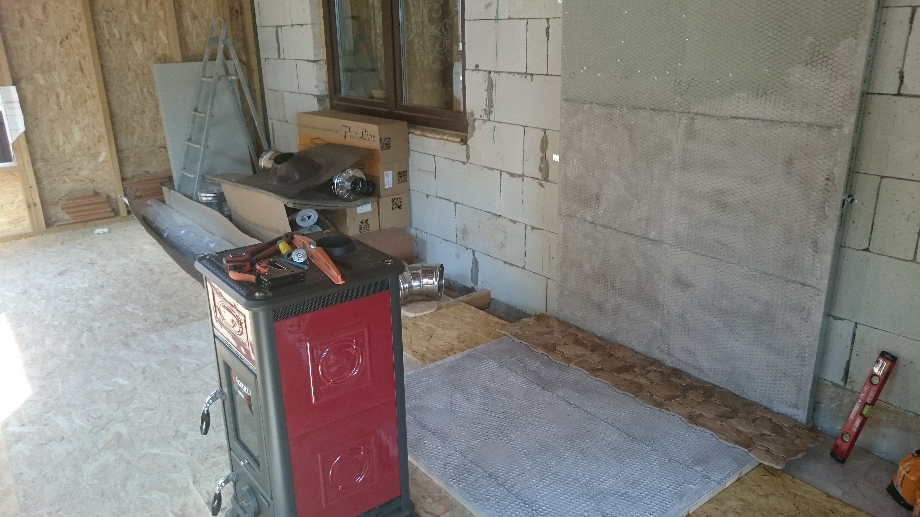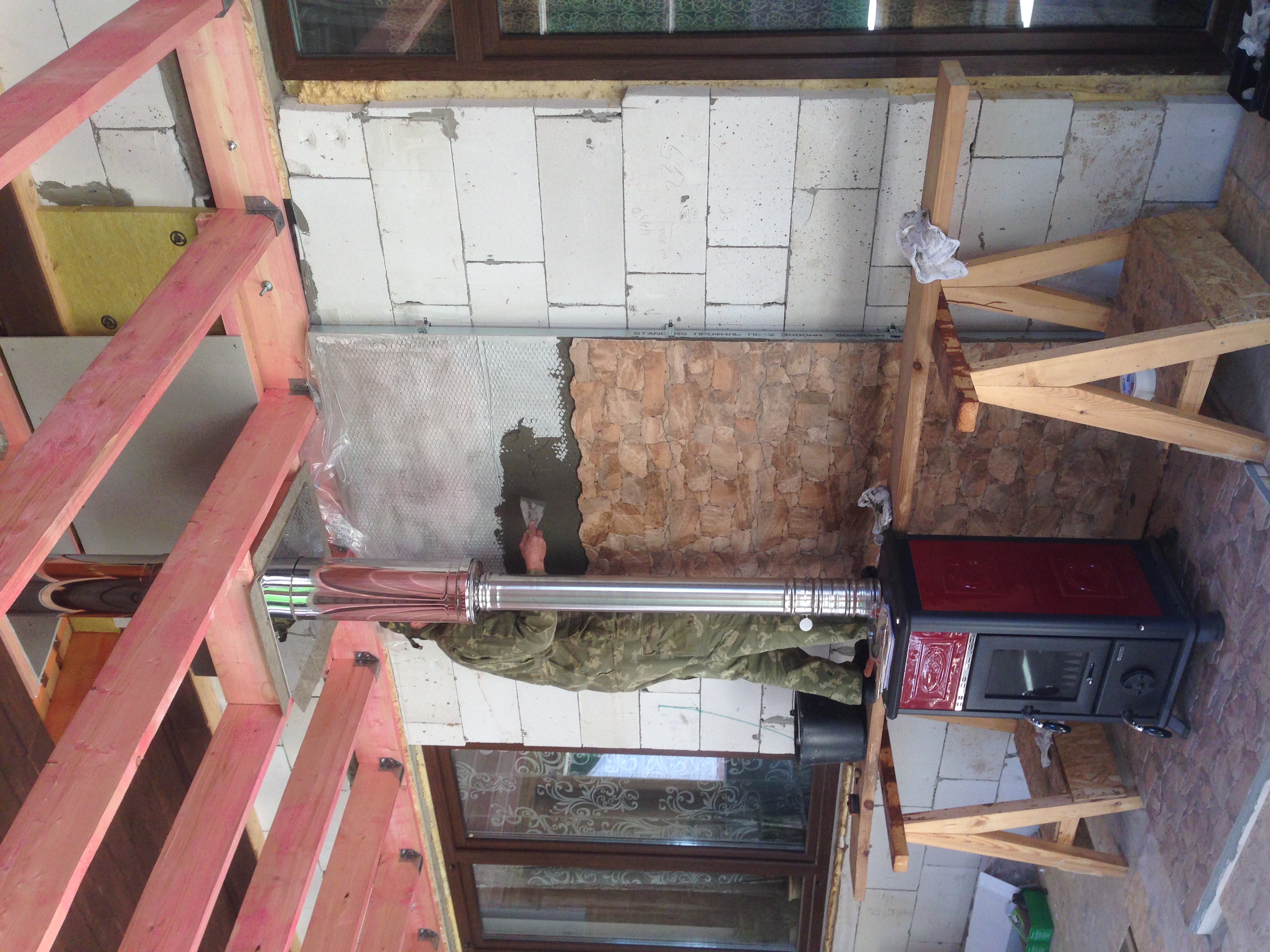 Просмотреть или сохранить оригинал: Установка печи камина в пристрое